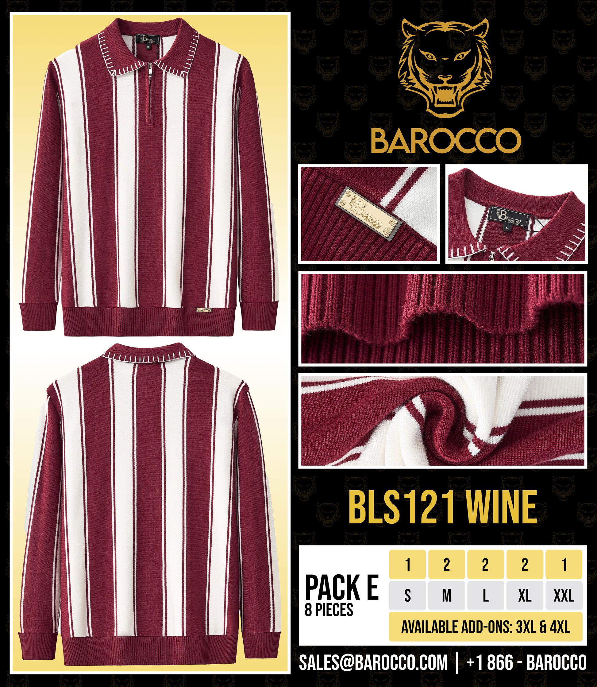 Description:The Vanguard Stripe Knit Polo LS channels vintage sophistication through a modern lens. Crafted from a smooth viscose-blend knit, it features bold vertical stripes and contrast stitching along the collar for a refined statement. With its tailored drape and subtle sheen, this piece embodies Barocco’s signature fusion of timeless polish and contemporary edge.