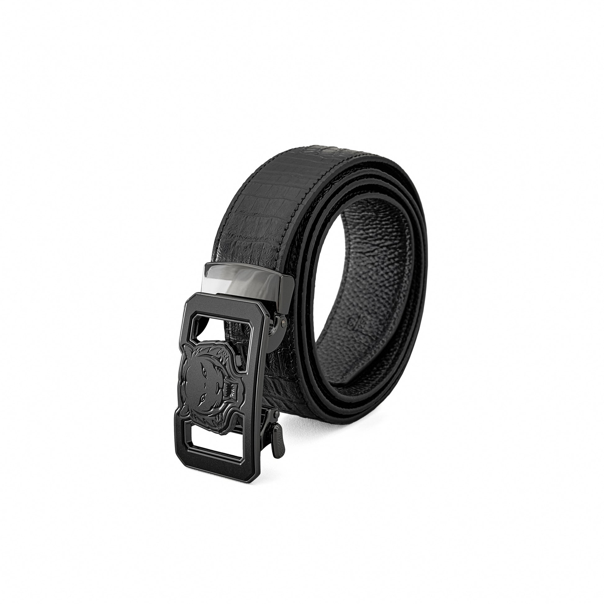 Croc-Emb. Leather Lion Auto BKL Belt – Gunmetal-GUN/BLACK