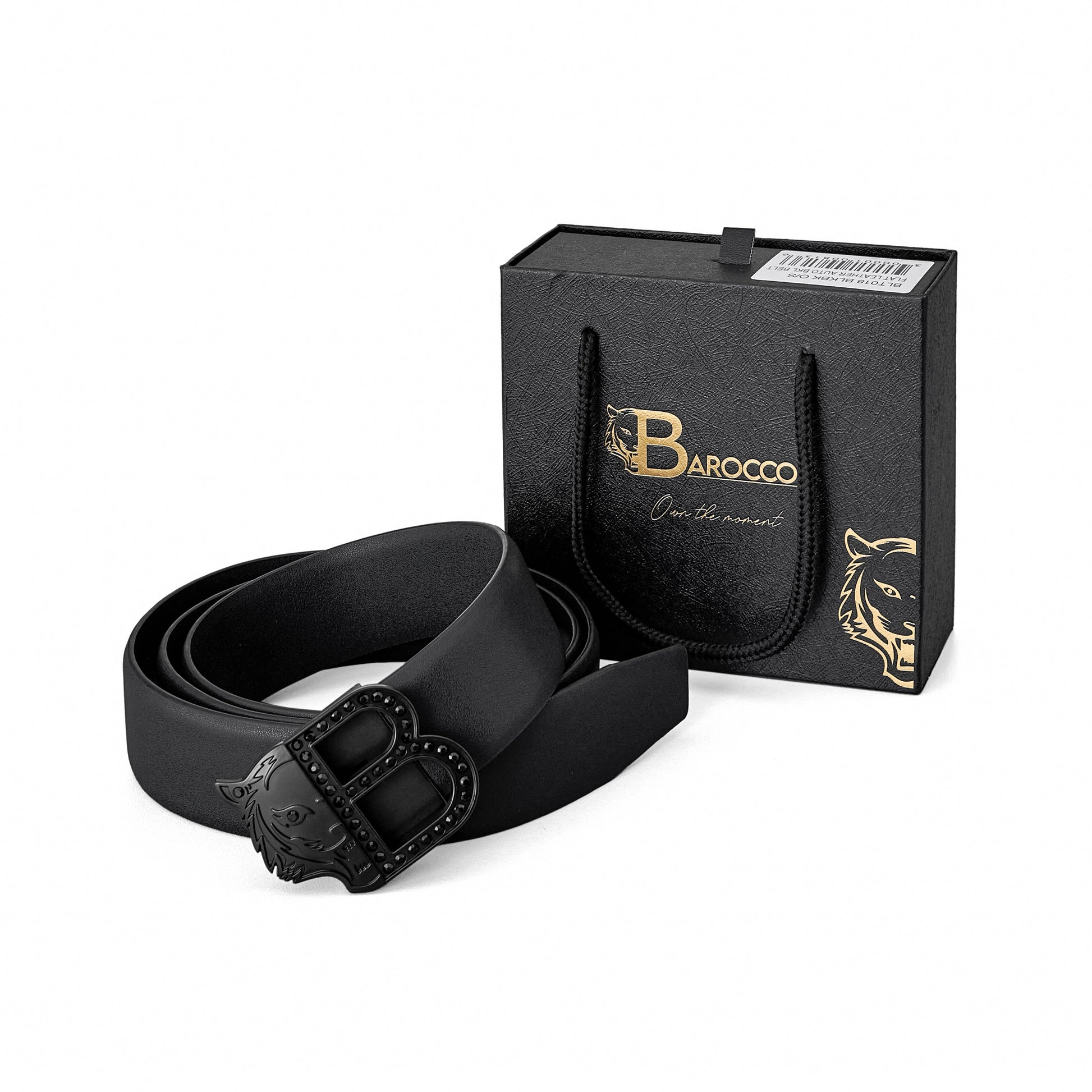 Streamlined and sophisticated, the Flat Leather Auto Buckle Belt delivers modern versatility with a bold edge. Designed with a smooth leather strap and finished with a sculptural automatic buckle, it makes a refined statement while keeping function effortless. Built to transition seamlessly from tailored attire to upscale casual, this belt is an essential finishing piece for the man who values both precision and polish. Details: Smooth leather strap with flat profile for a sleek look Automatic buckle for secure, easy fastening Matte black buckle with subtle studded accents Adjustable fit for comfort and versatility Designed to pair with both formal and casual outfits Fabric & Care: Genuine leather strap Metal alloy buckle Wipe clean with a soft cloth Avoid excessive moisture and direct heat