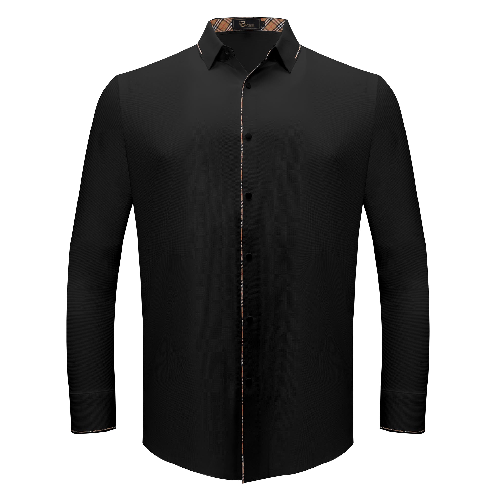 The Modern Class shirt embodies masculine elegance and modern comfort. Engineered with cutting-edge stitchless technology, it offers a sleek, seamless look while providing unmatched durability. Designed for all-day wear, the shirt features 4-way stretch fabric that ensures unrestricted movement and extra comfort. Its breathable fabric keeps you cool in any setting, while the sophisticated checkered plaid lining along the collar and placket adds a bold, stylish contrast. Whether you're at the office or out for the evening, this shirt is a statement of confidence and refinement, balancing timeless style with contemporary flair.