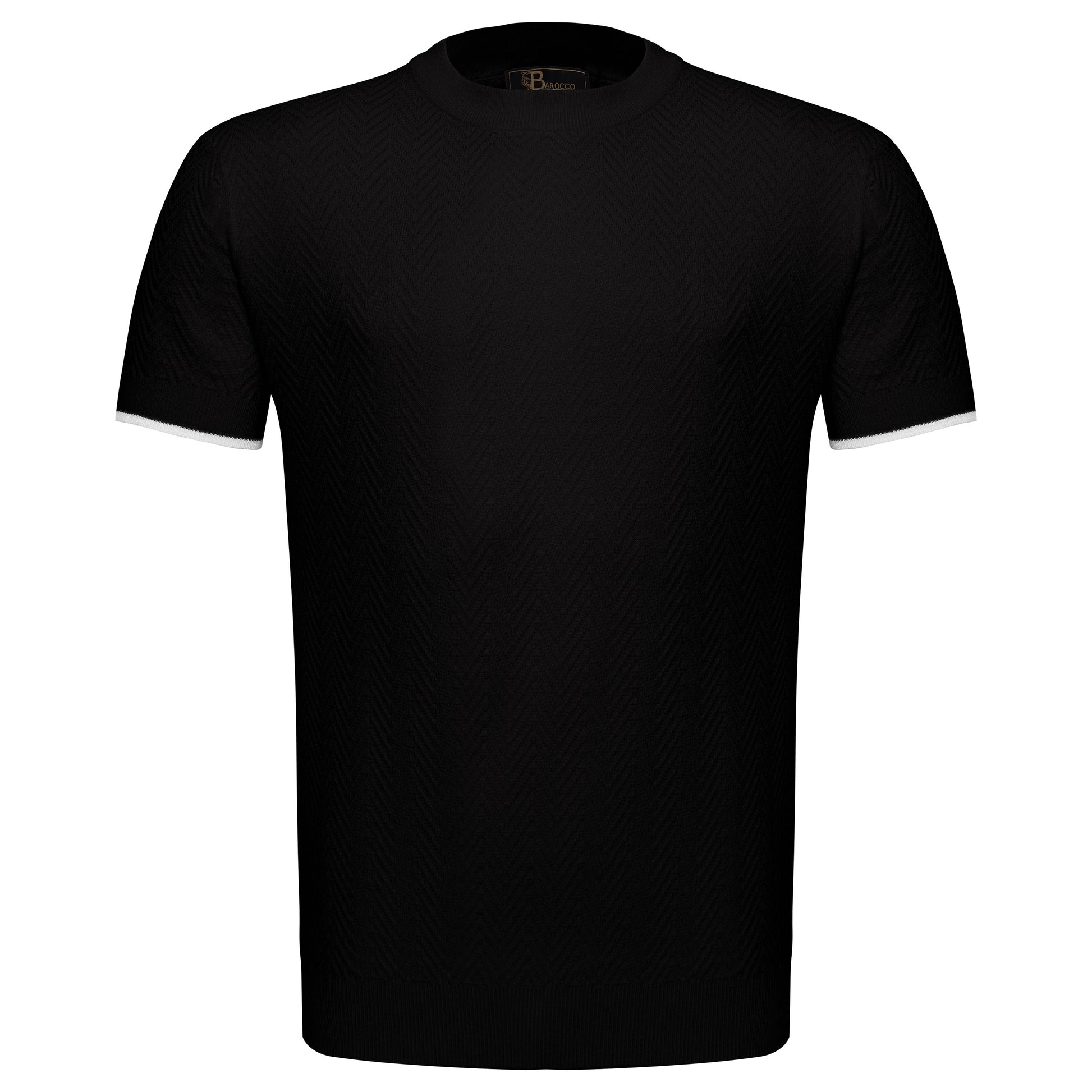 Experience effortless style and superior comfort with the Barocco BreezeKnit Tee. Designed for the modern gentleman, this premium knit t-shirt features a refined textured pattern that enhances its sophisticated appeal. Crafted from a luxurious blend of viscose and polyester, the lightweight and breathable fabric ensures all-day comfort while maintaining a sleek, tailored fit. With subtle contrast sleeve detailing and a timeless crew neck design, the BreezeKnit Tee is the perfect blend of elegance and versatility, making it a must-have for any wardrobe.