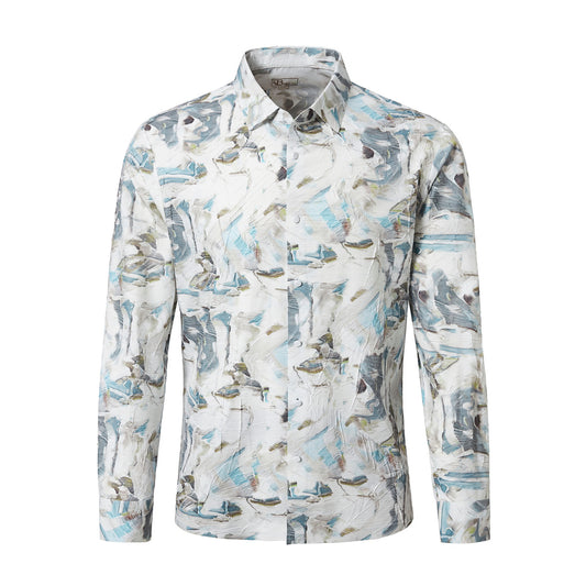 Bold expression meets streamlined construction in the DriftPrint Performance LS Shirt. Crafted entirely from smooth polyester, this shirt delivers lightweight structure with a crisp drape. Its allover abstract motif channels a dynamic, contemporary energy — ideal for those who favor artful precision over the ordinary. Details: Long sleeve, button-down style Abstract printed pattern throughout Clean front with covered placket Crisp collar and tailored cuffs Slim fit with straight hem Fabric & Care: 100% Polyester Machine wash cold Do not bleach Tumble dry low or hang to dry Iron on low if needed