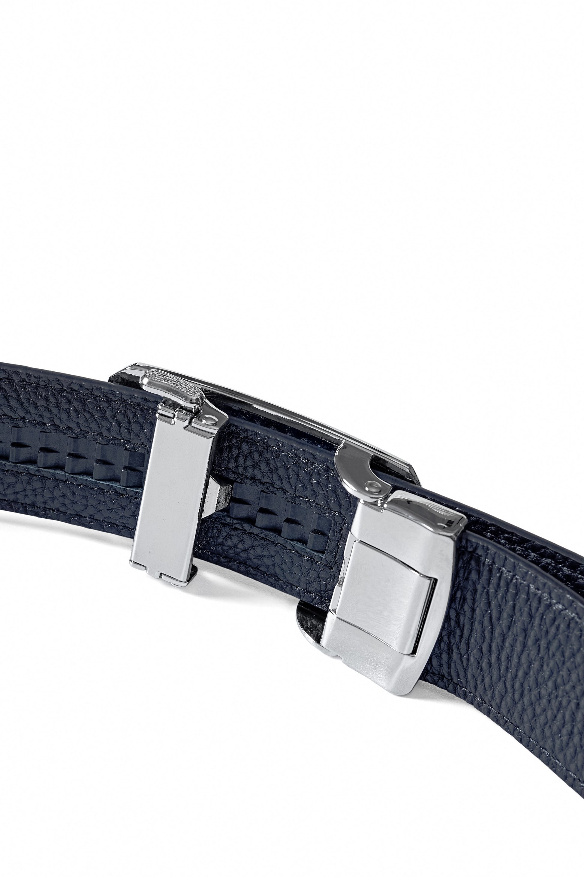 Ostrich-Embossed Leather Lion Auto BKL Belt – Silv-SILVER/NAVY