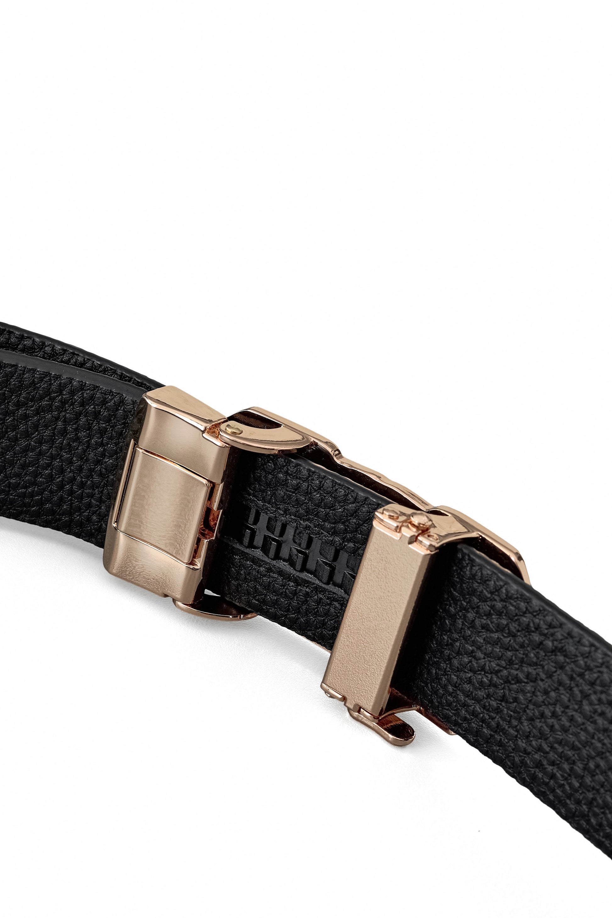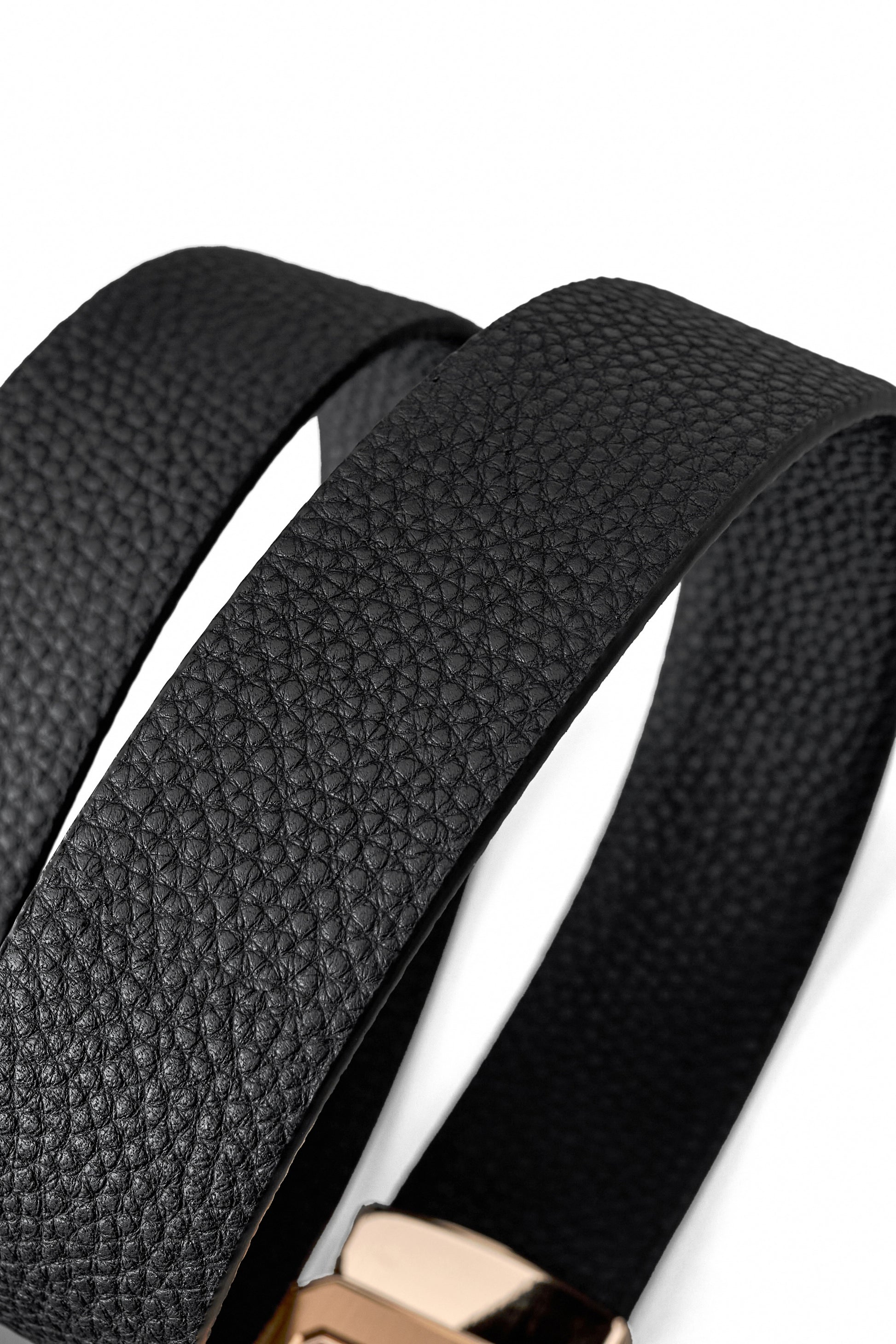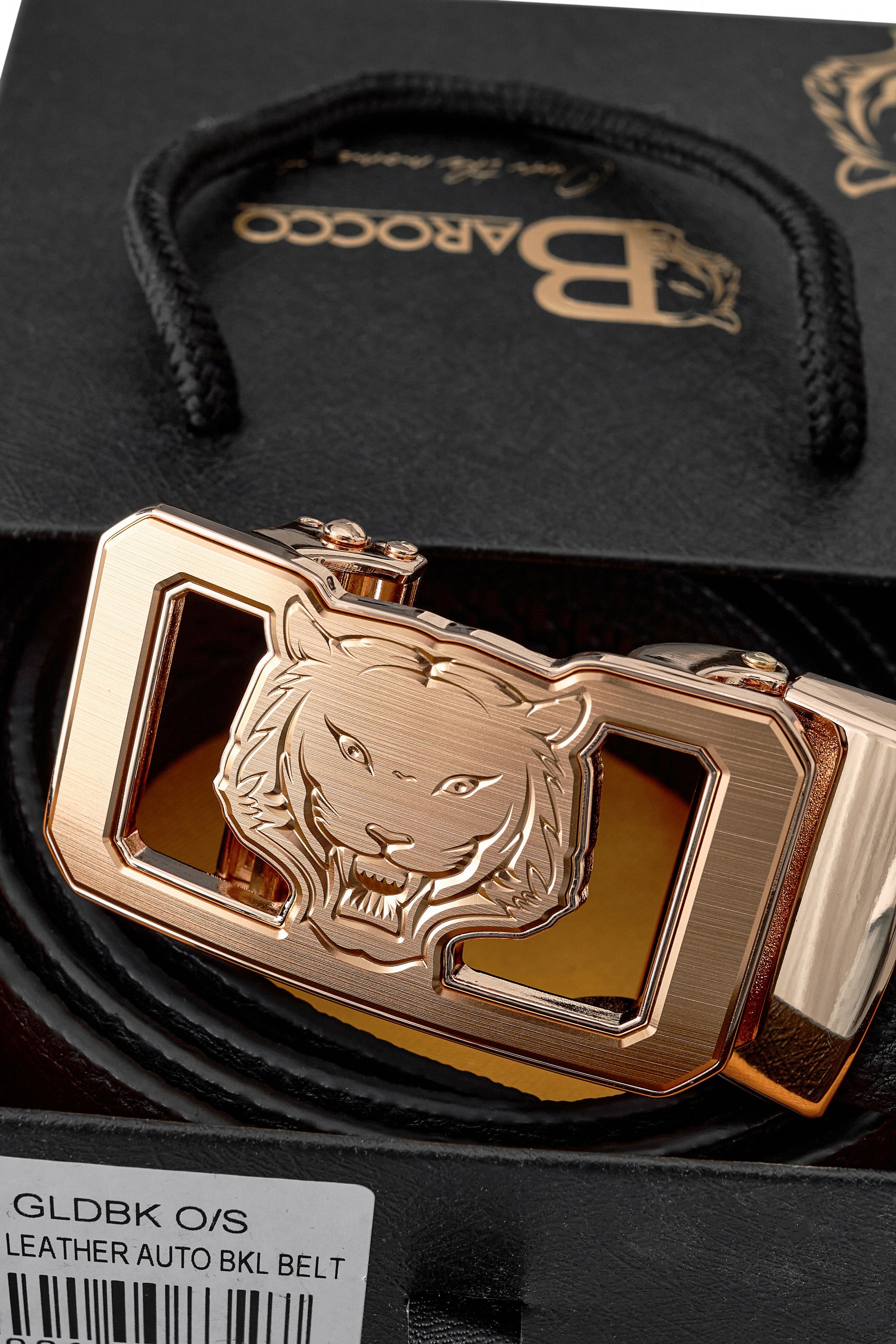 Pebbled Leather Lion Auto BKL Belt – Gold Ed.-GOLD/BLACK