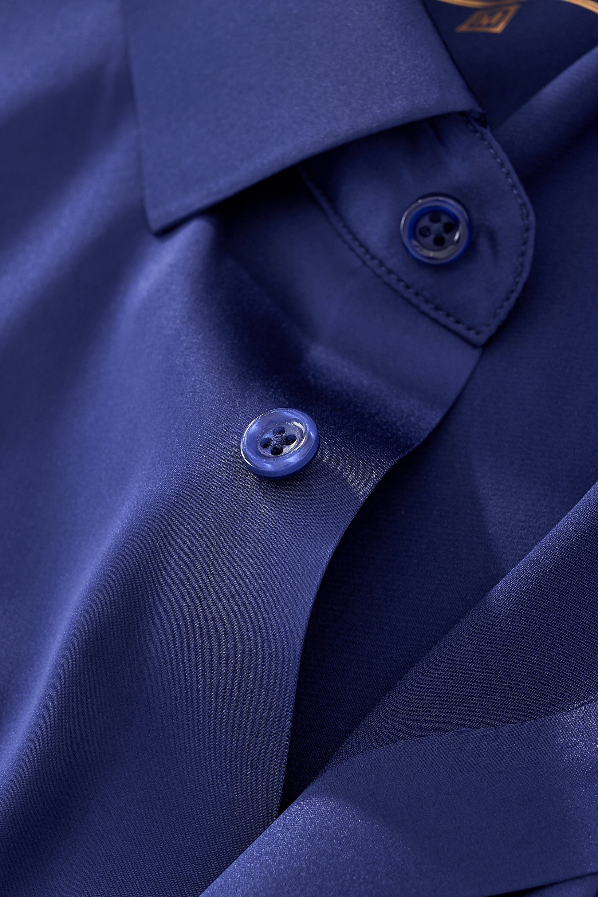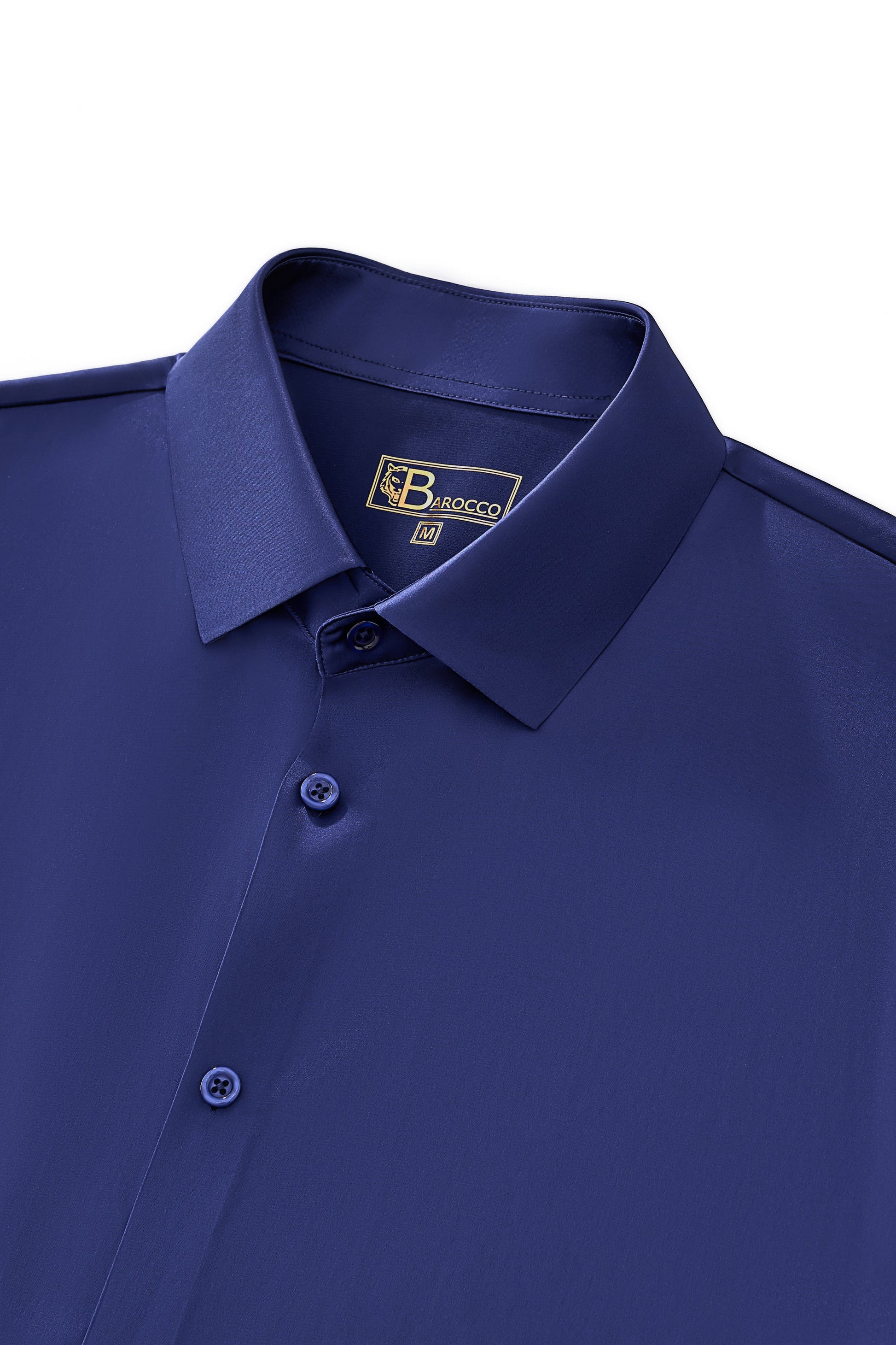 SIGNITURE SATIN STITCHLESS LS Shirt-NAVY