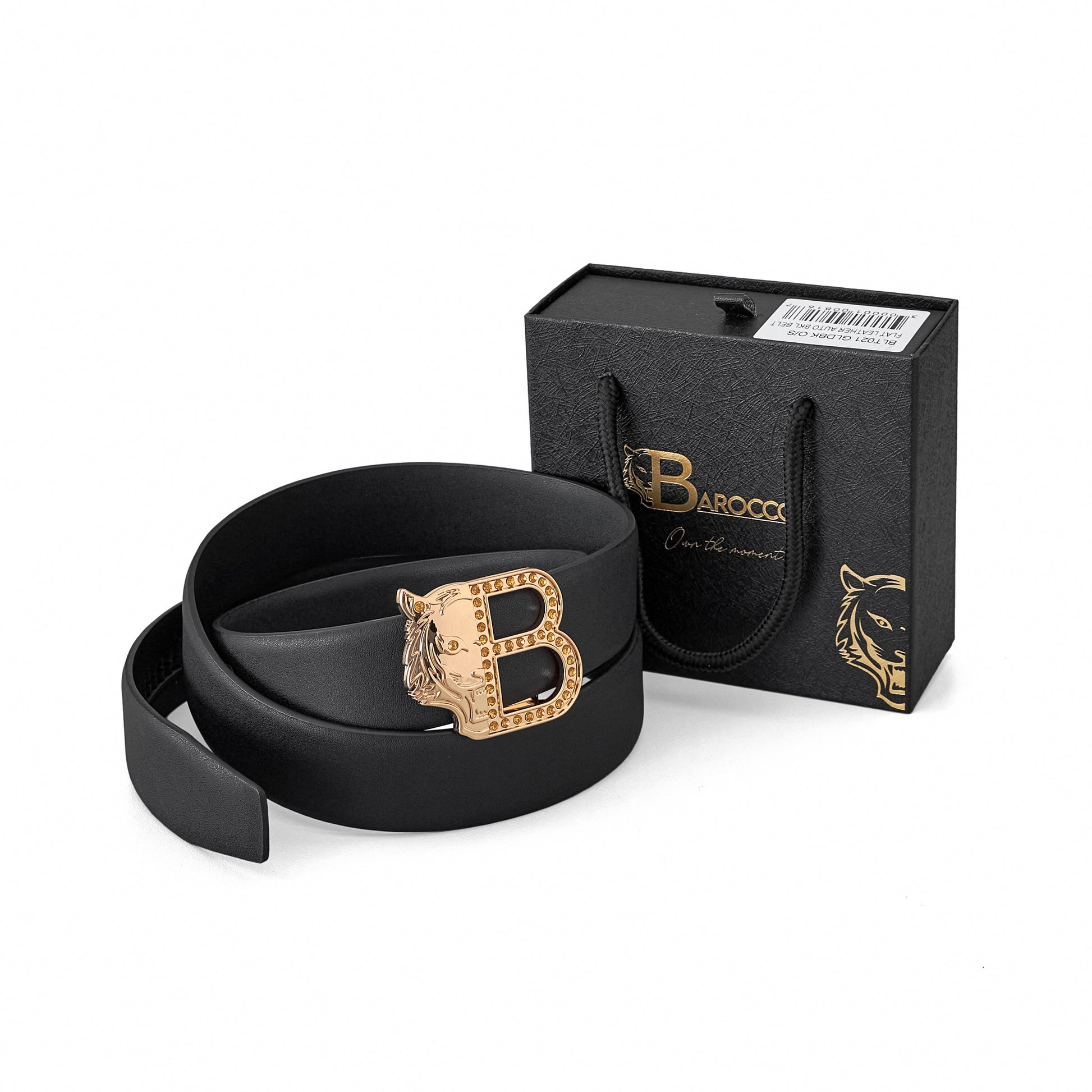 Smooth Leather Auto Buckle Belt – Gold Edition-GOLD/BLACK