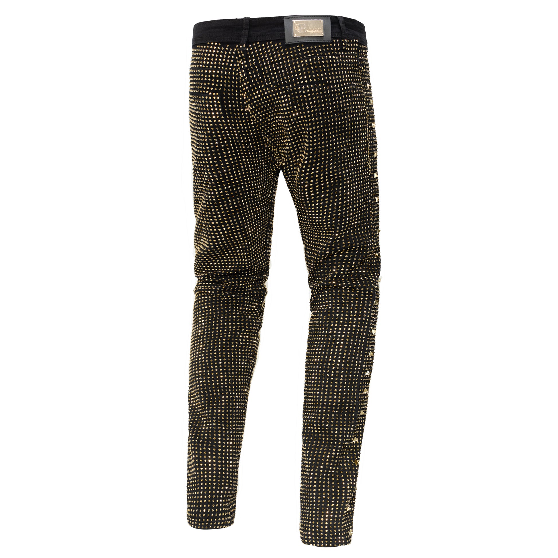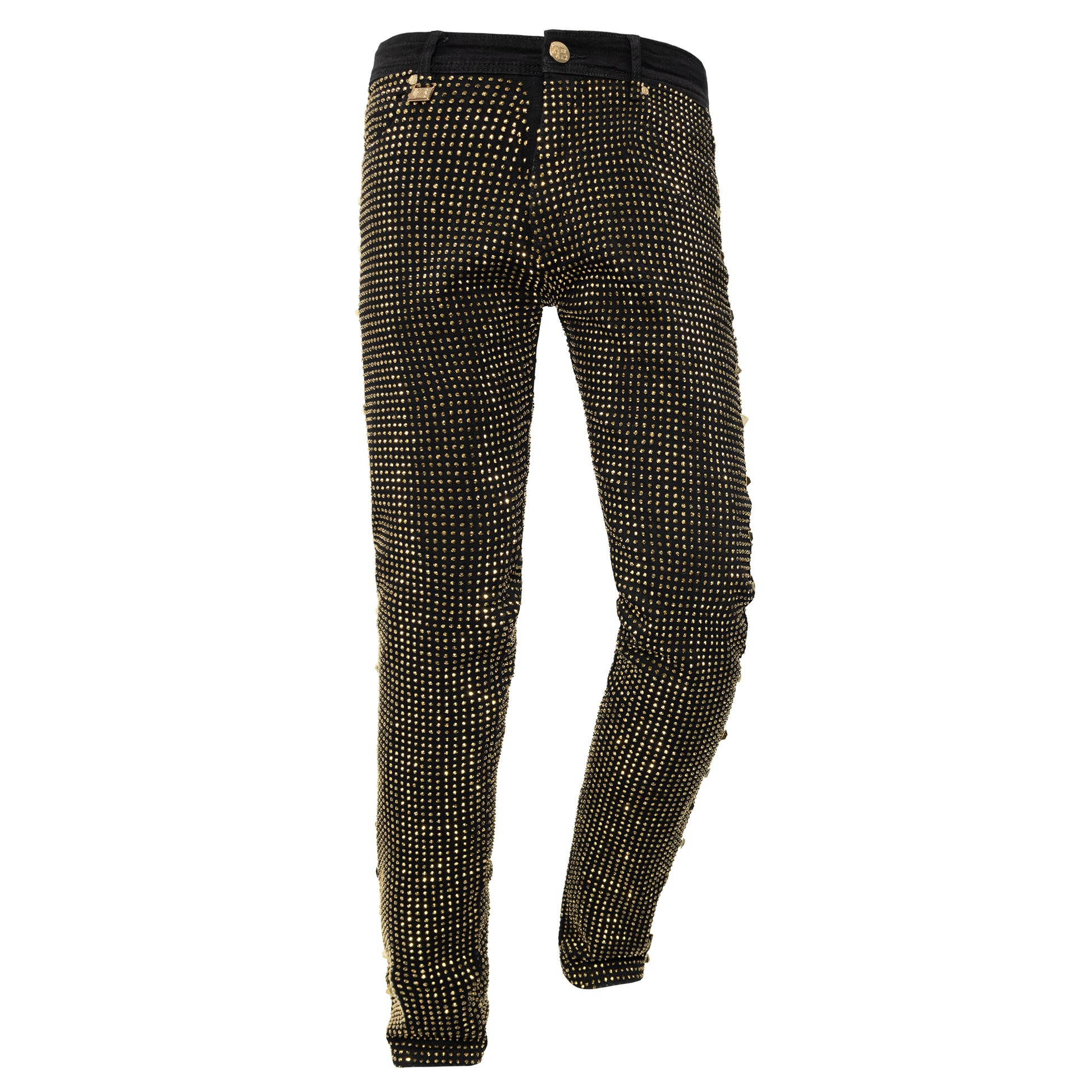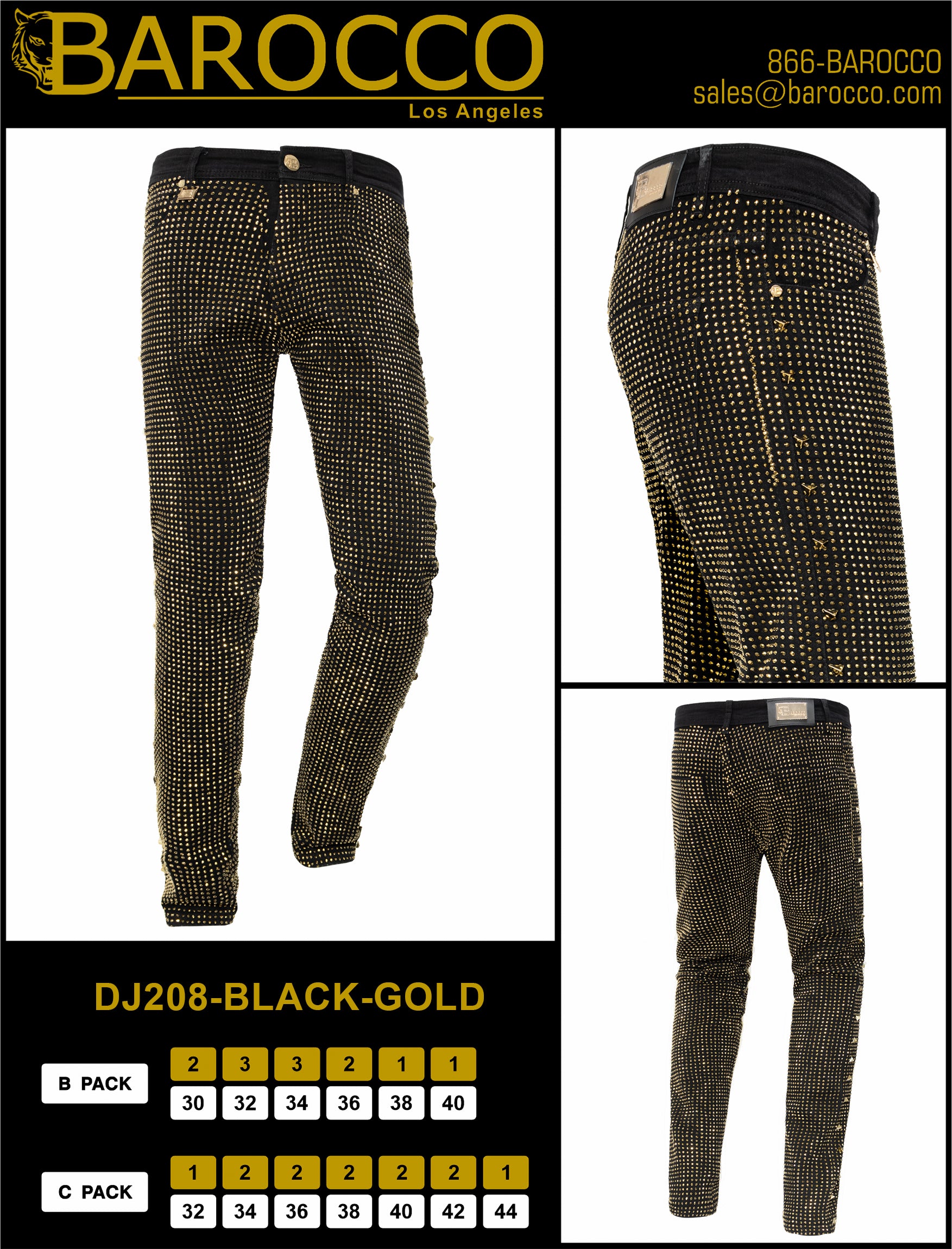 Dazzle with confidence in the DJ208 Pure Style Pants, designed for those who crave a standout look. These skinny-fit pants are fully embellished in radiant rhinestones, delivering an unmatched 'bling' factor that commands attention. Whether you're at a red carpet event or dressing up for a night out, these pants exude an air of elegance with a dressy casual appeal. The stretch fabric ensures maximum comfort and flexibility, allowing you to move freely while maintaining a sharp, tailored silhouette. Slip into the Pure Style Pants and embrace a look that balances luxury, comfort, and style. This piece effortlessly blends boldness with sophistication, perfect for those who appreciate fashion with a statement.