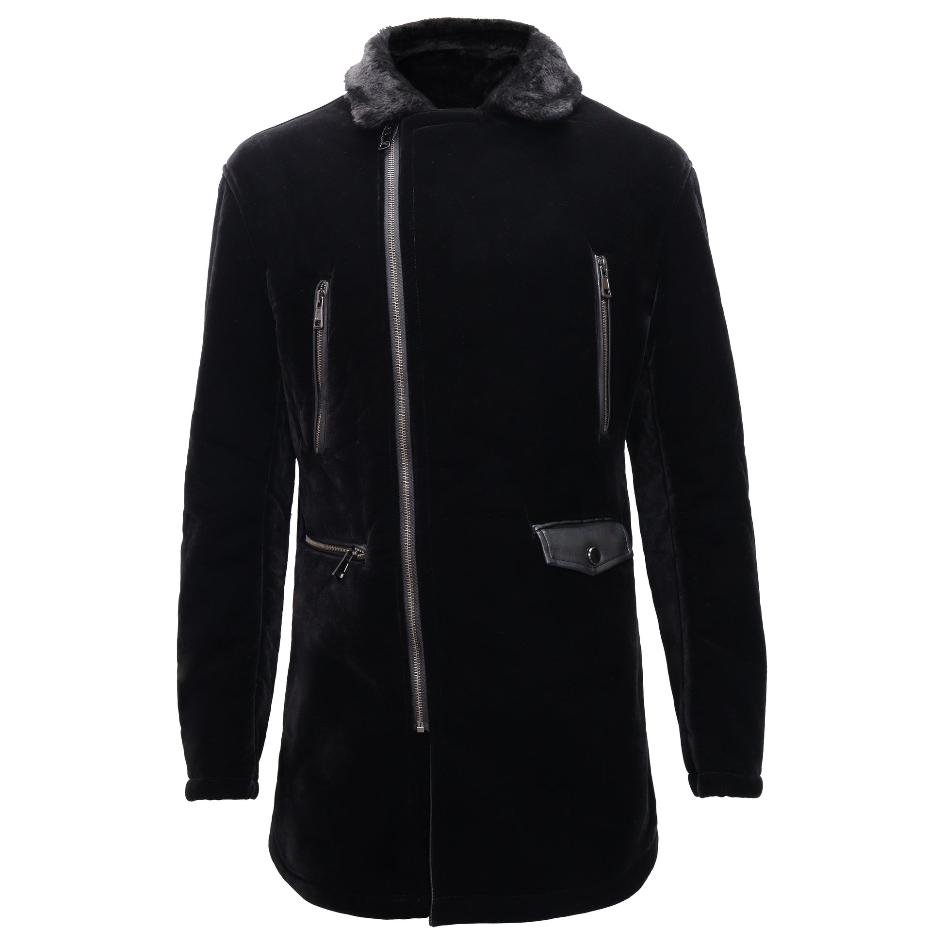 Faux Fur Collar Velvet Jacket BLACK
