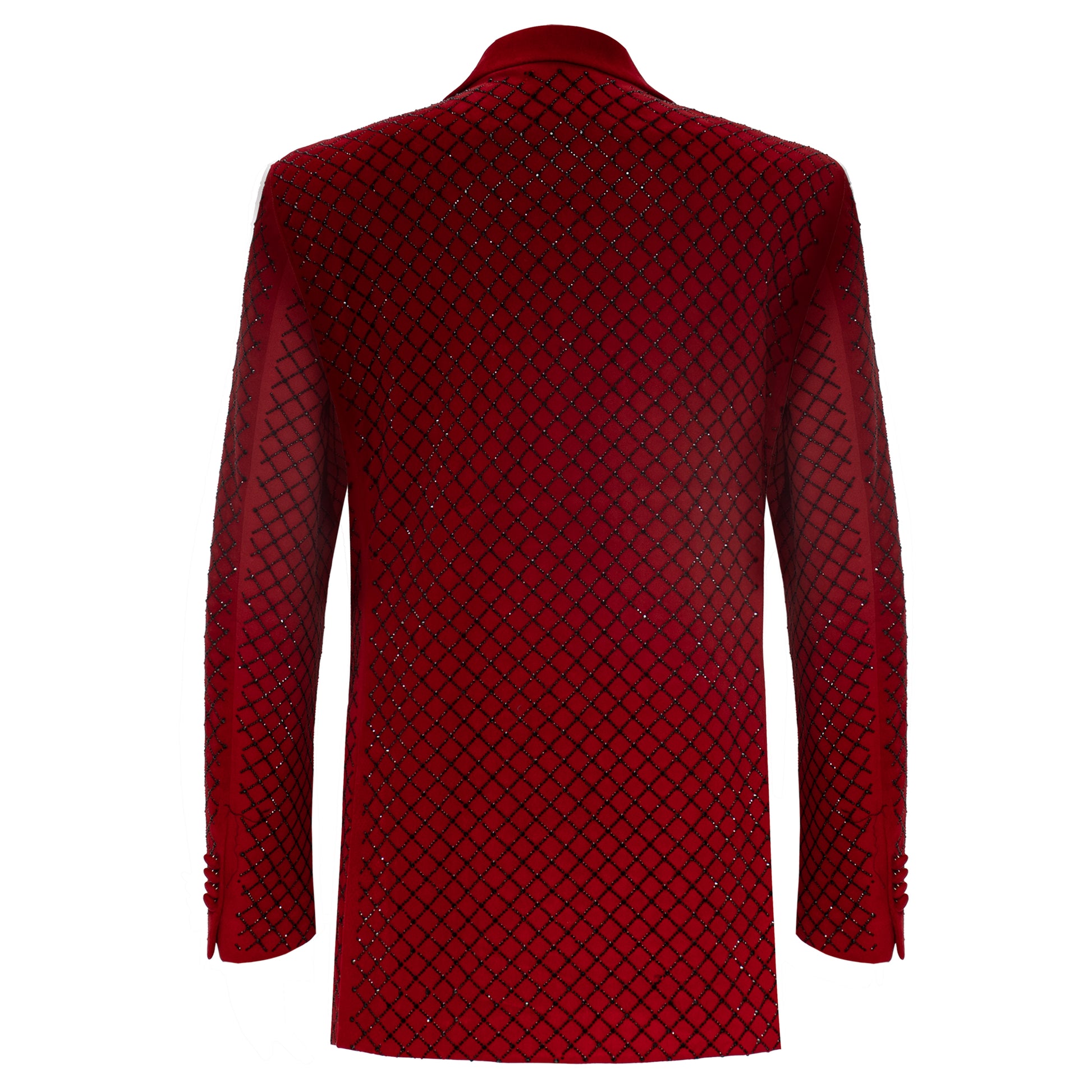 “Command attention with the SB422 Black Embellished Blazer, crafted for those who thrive on bold statements and luxurious style. The sleek black fabric is elevated with intricate crystal detailing, adding a dazzling bling factor that's perfect for the red carpet, runway, or any high-profile event. The peak lapel and single-button closure create a sharp silhouette, while the stretch fabric ensures maximum comfort, allowing you to move with ease and confidence. Designed for singers, artists, and anyone ready to own the spotlight, this blazer blends sophistication with eye-catching flair, making it a must-have for any fashion-forward wardrobe.”