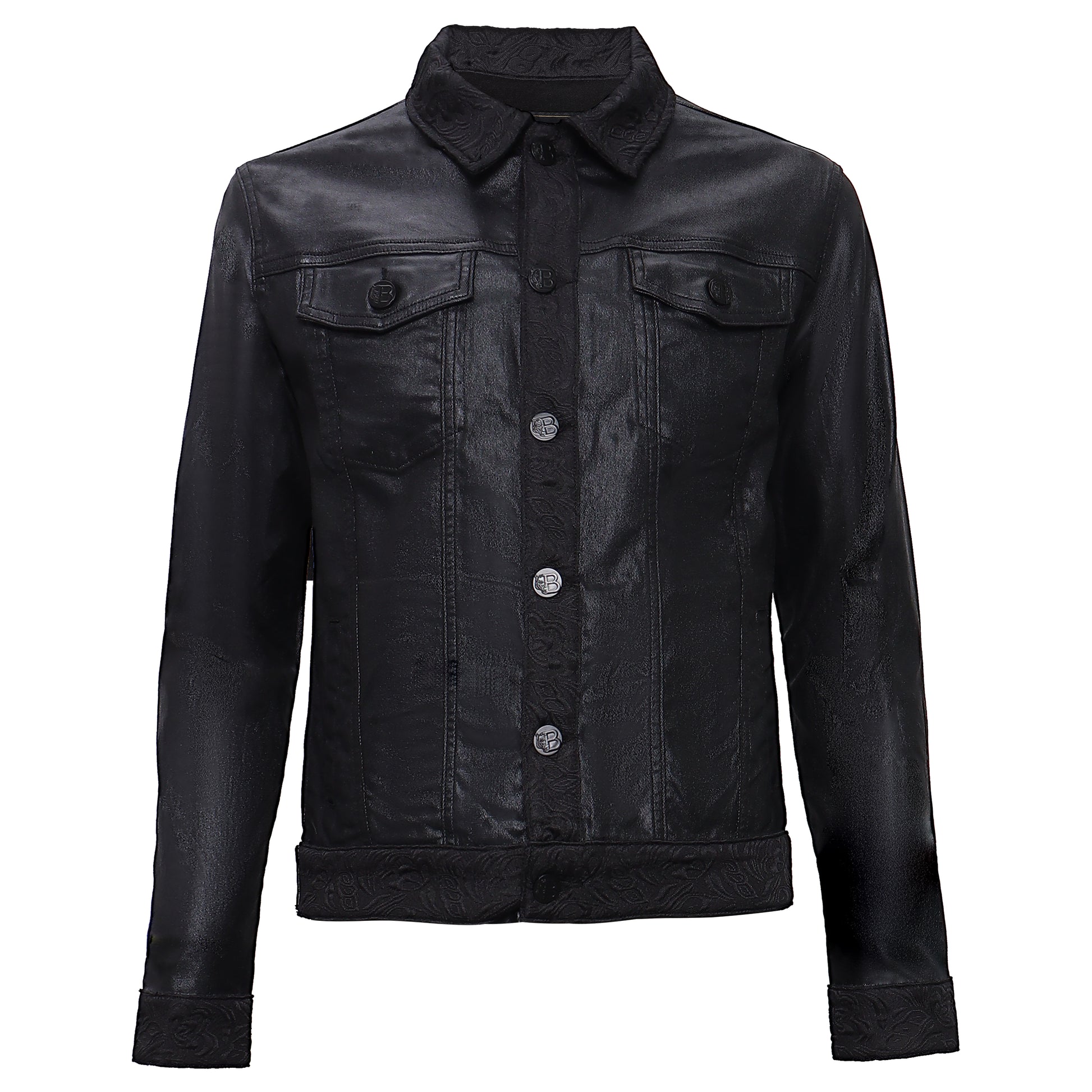 “Bold meets elegance in the JJ604 Crisp Creation jacket. This black denim masterpiece, enhanced with intricate floral embroidery along the collar, placket, and waistband, is designed to command attention. Featuring stretch fabric for ultimate comfort, it's tailored for singers, artists, and those who crave runway and red carpet appeal. The perfect blend of edgy and refined, this jacket offers a sophisticated statement piece for high-profile performances and exclusive events. Step out in style and embrace the fusion of art and fashion.”