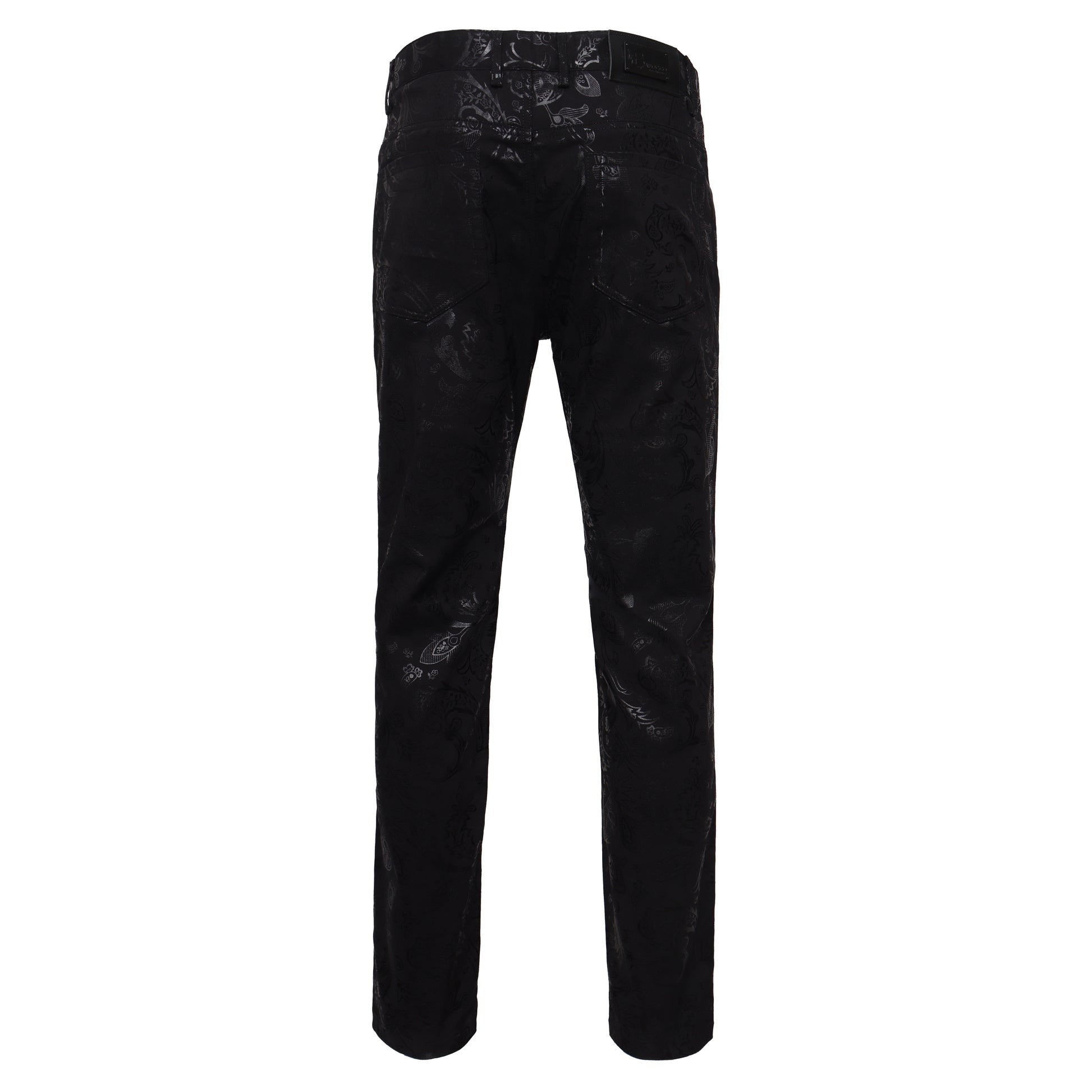 Command attention with the Regal Noir slim-fit pants. Designed for the modern man, these black pants combine sleek style with comfort. The intricate textured detailing adds a unique dimension, perfect for dressy and dressy casual occasions alike. Constructed with premium stretch fabric, they offer both flexibility and a tailored, slim-fit look. Whether paired with a sharp dress shirt or a smart casual piece, the Regal Noir pants ensure you stand out with confidence and refined sophistication in any setting.