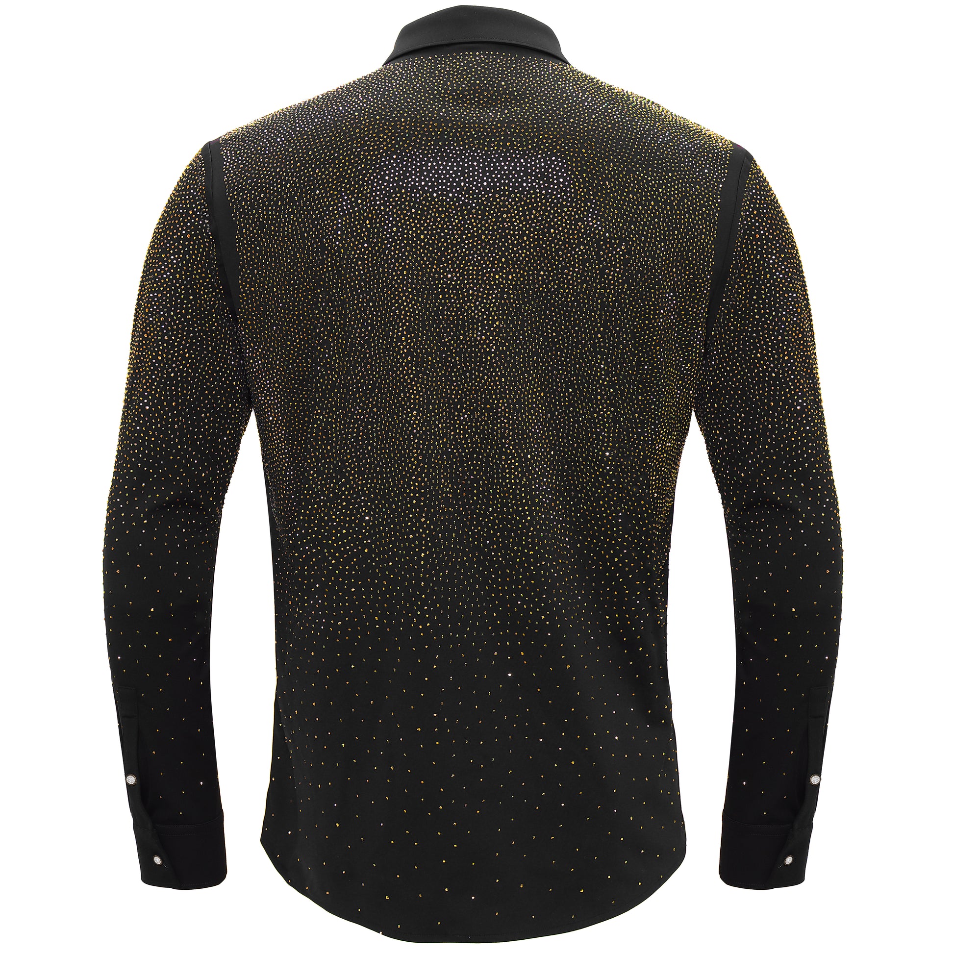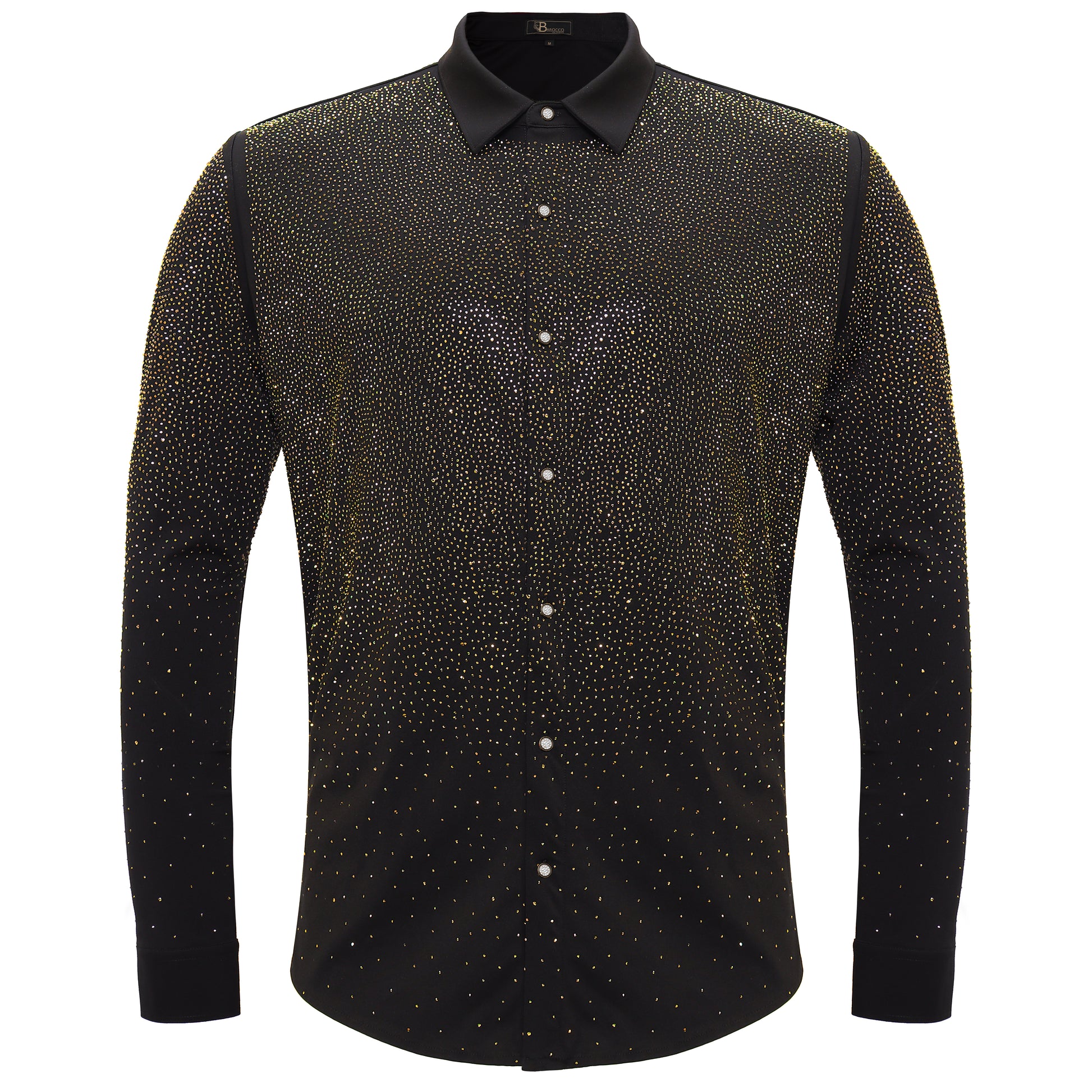 The Super Nova Button-Up Shirt embodies a perfect blend of sophistication and performance. Engineered with stitchless technology, this shirt provides a streamlined look that emphasizes masculine elegance. Enjoy the freedom of movement with the 4-way stretch fabric, designed to adapt to your every move while maintaining exceptional comfort. The breathable fabric ensures you stay cool and fresh, whether you're navigating a busy day or enjoying a night out. Eye-catching rhinestones elegantly adorn the full body, adding a striking touch of glamour that sets you apart in any crowd. For the modern man who values both style and functionality, the Super Nova is a standout choice that combines comfort and bold design effortlessly.