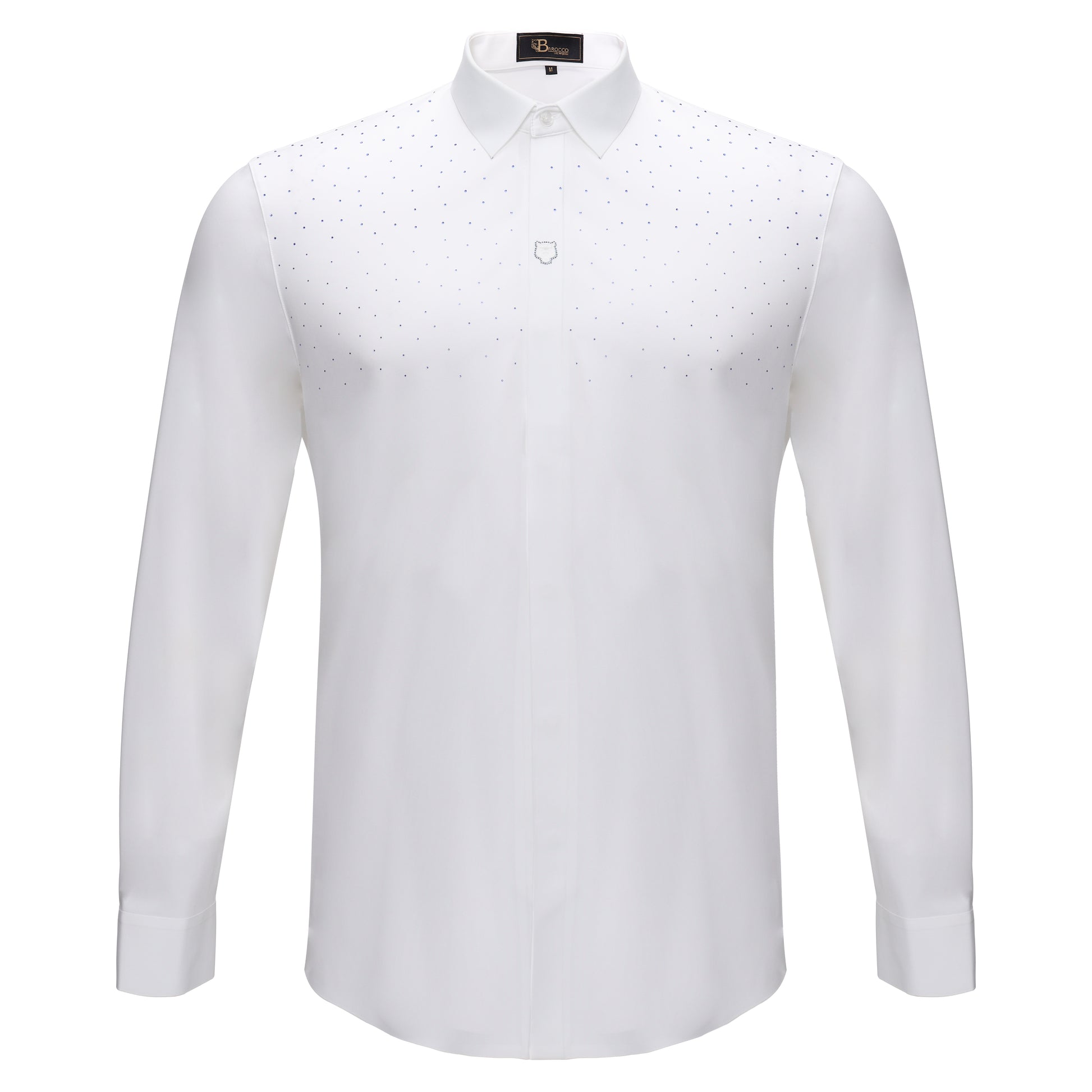 Introducing the 'Thrill Seeker' Button-Up Shirt—where modern masculinity meets adventurous style. This shirt is engineered for the bold, featuring superior stretch and extra comfort that empowers you to move with confidence. Crafted with cutting-edge stitchless technology, it delivers a refined look while eliminating discomfort from seams. With breathable fabric and 4-way stretch, the 'Thrill Seeker' adapts seamlessly to your body, ensuring you stay comfortable whether you're exploring the city or attending a night out. The eye-catching rhinestone details on the chest bring an element of glam, making sure all eyes are on you. Adorned with the Barocco signature tiger, this shirt exudes power and charisma—ideal for the man who embraces thrill and excitement at every turn. Make the 'Thrill Seeker' your go-to piece for a striking, confident presence.