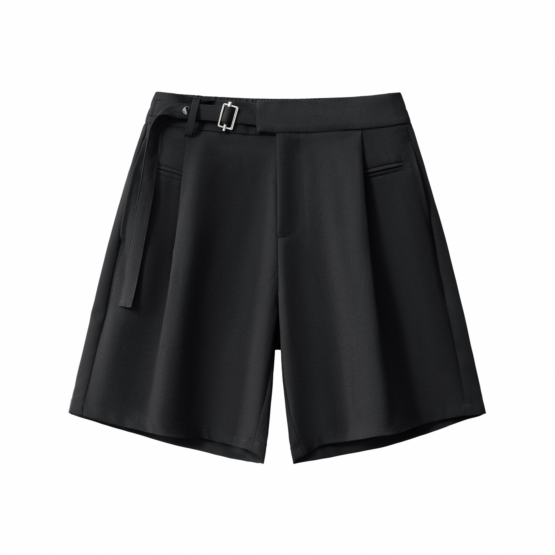 Smart tailoring meets modern utility in the Contour Belted Short. Cut from a smooth structured fabric, this pleated short features a built-in tonal belt with a sleek metal buckle for a refined finish. Side and welt pockets add functional edge, while the clean lines and tailored silhouette make it a versatile piece for elevated casual styling.