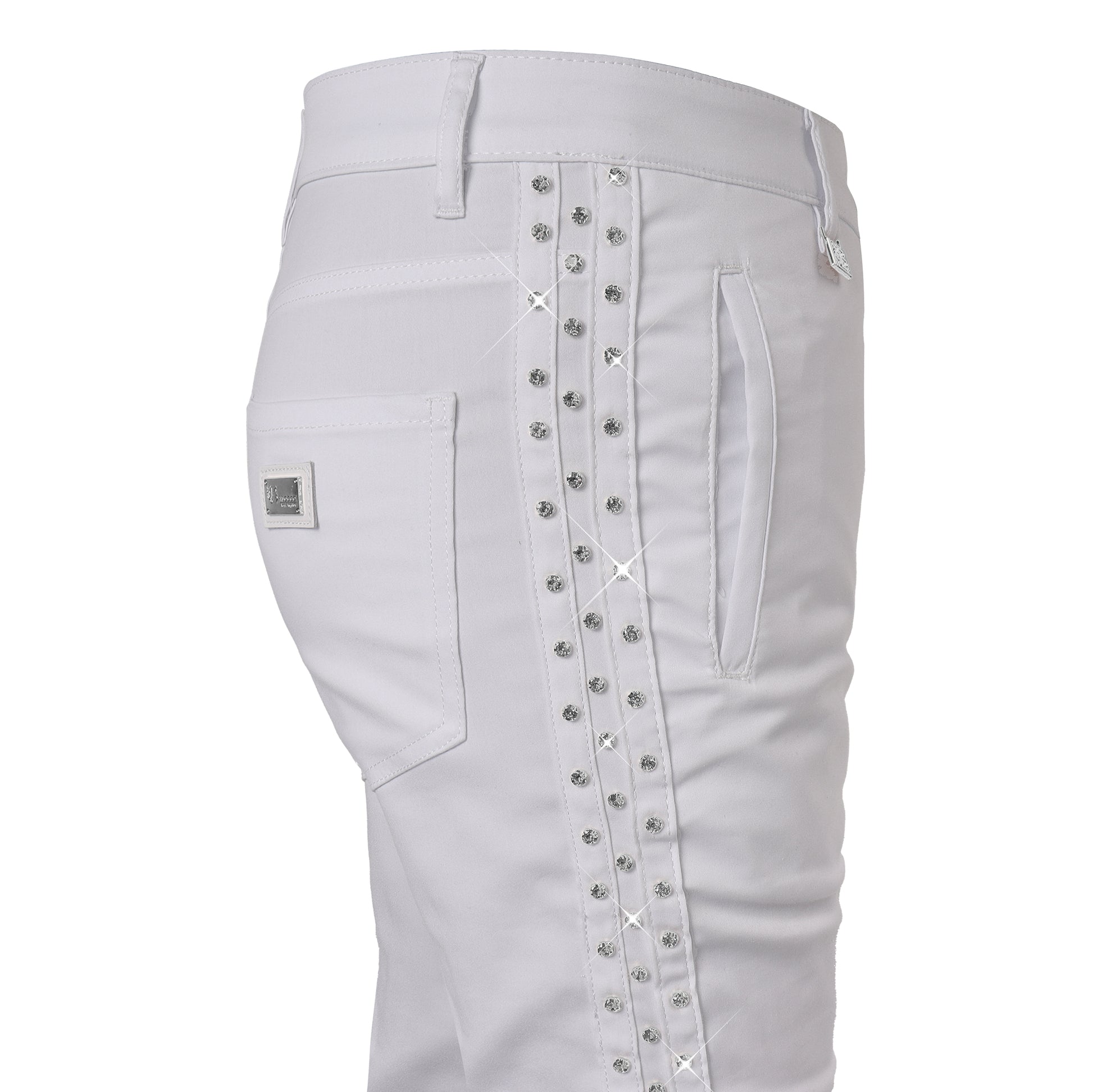 Elevate your wardrobe with the Key Piece Pants, a perfect blend of elegance and versatility. Designed with a slim fit that flatters every silhouette, these pants feature a sophisticated outseam adorned with shimmering rhinestuds for a touch of refined glam. Crafted from a stretch fabric, they offer ultimate comfort without compromising on style, making them ideal for both dressy occasions and casual outings. Whether you’re heading to a dinner party or a night out with friends, these pants deliver a classy, polished look that is sure to turn heads. The signature Barocco logo on the back pocket adds an exclusive flair, ensuring you stand out in any setting. Experience the seamless combination of style and comfort with these essential pants that define modern elegance.