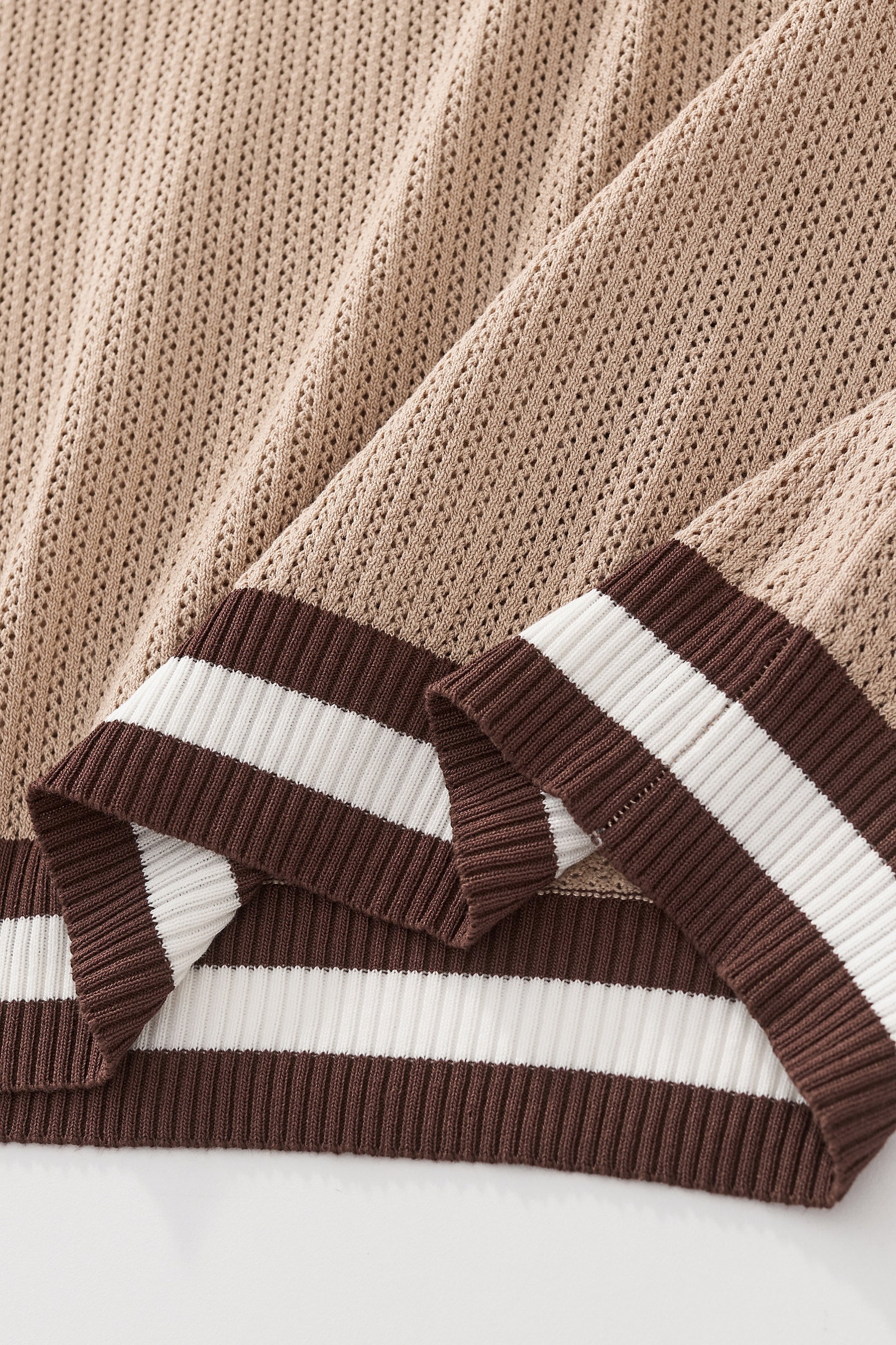 Retro Stripe Zip Polo-WHITE/KHAKI