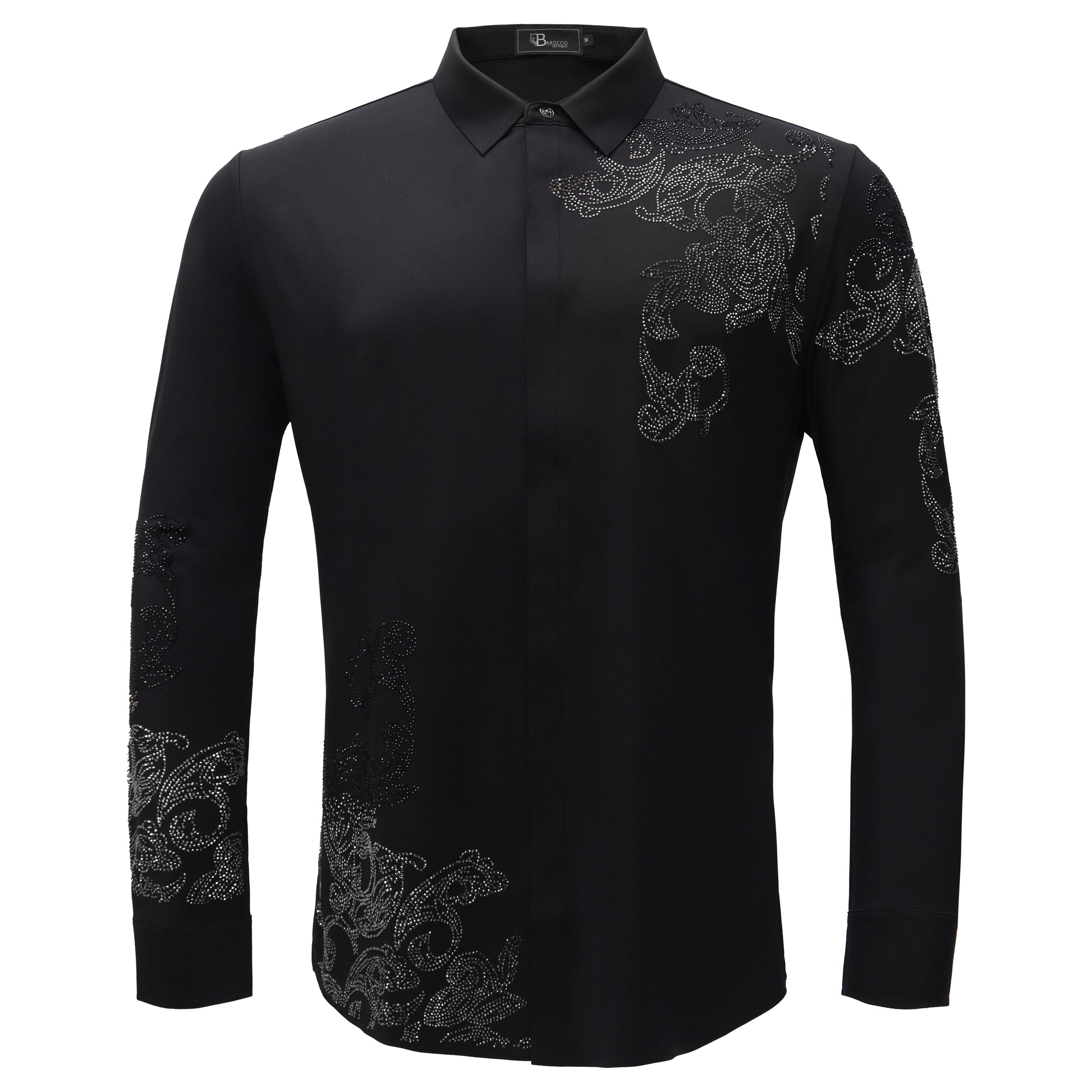 Floral Crystal Shirt BLACK/GUN SILVER