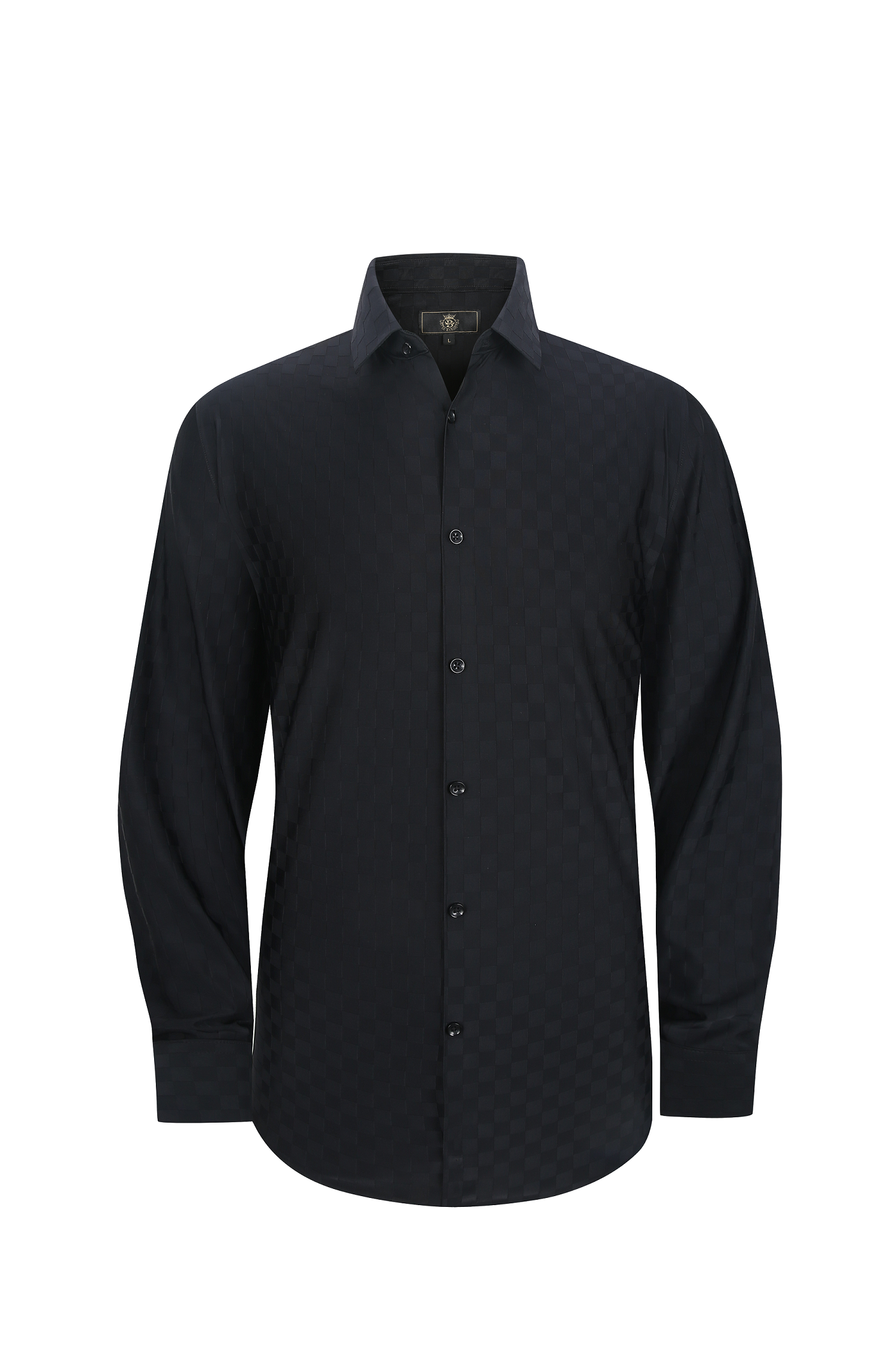 Understated performance meets refined texture in the Checkmate Stretch Shirt. Defined by its tonal checker pattern and tailored silhouette, this long sleeve style delivers a sleek, modern look with technical ease. Designed to flex with the body, it brings comfort and polish to any setting. Details: Long sleeve button-up shirt Tonal checker pattern throughout Clean construction with a classic collar Minimalist placket with tonal buttons Lightweight, breathable, and engineered for stretch Fabric & Care: 83% Nylon 17% Spandex Machine wash cold Do not bleach Tumble dry low or hang to dry Iron on low if needed