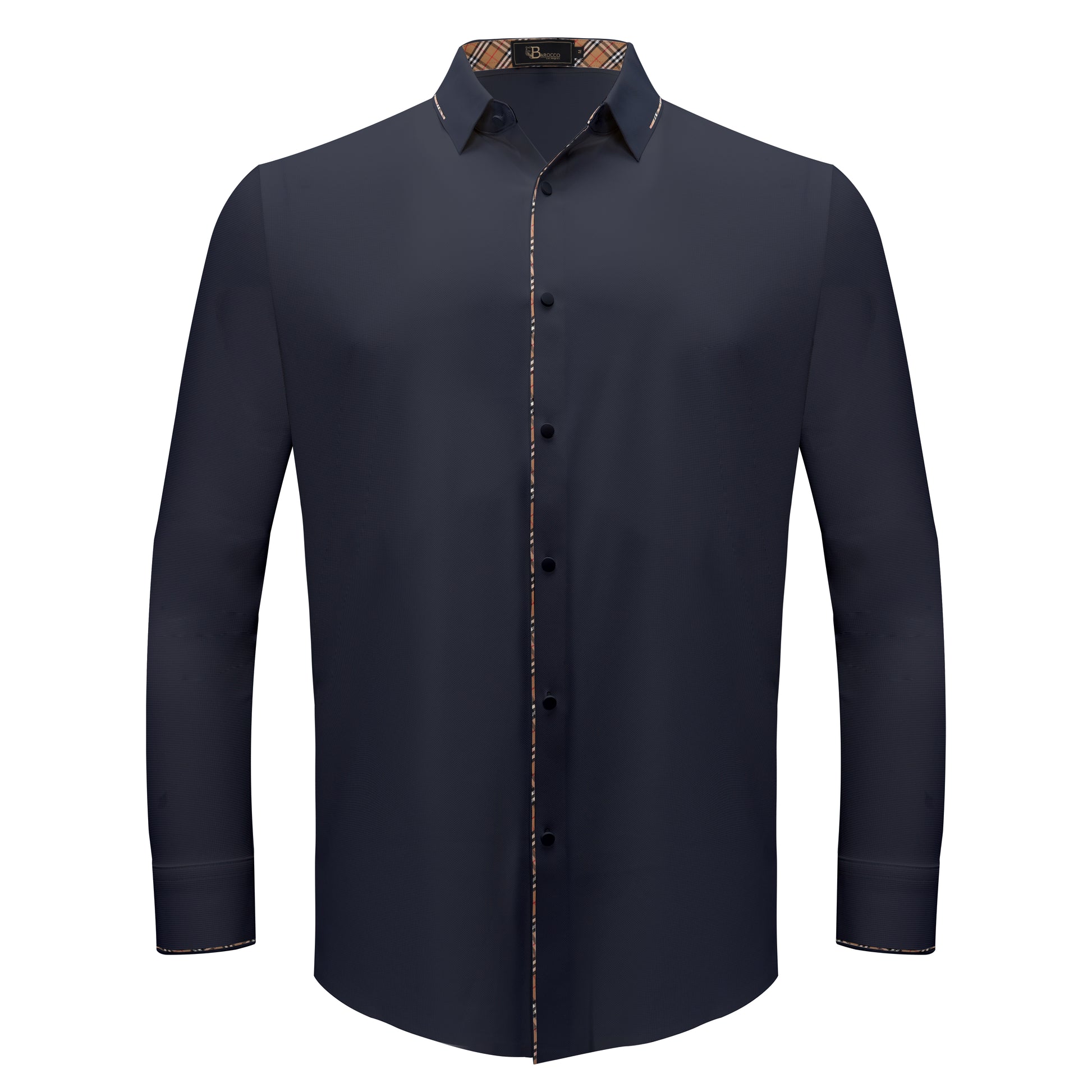 The Modern Class shirt embodies masculine elegance and modern comfort. Engineered with cutting-edge stitchless technology, it offers a sleek, seamless look while providing unmatched durability. Designed for all-day wear, the shirt features 4-way stretch fabric that ensures unrestricted movement and extra comfort. Its breathable fabric keeps you cool in any setting, while the sophisticated checkered plaid lining along the collar and placket adds a bold, stylish contrast. Whether you're at the office or out for the evening, this shirt is a statement of confidence and refinement, balancing timeless style with contemporary flair.