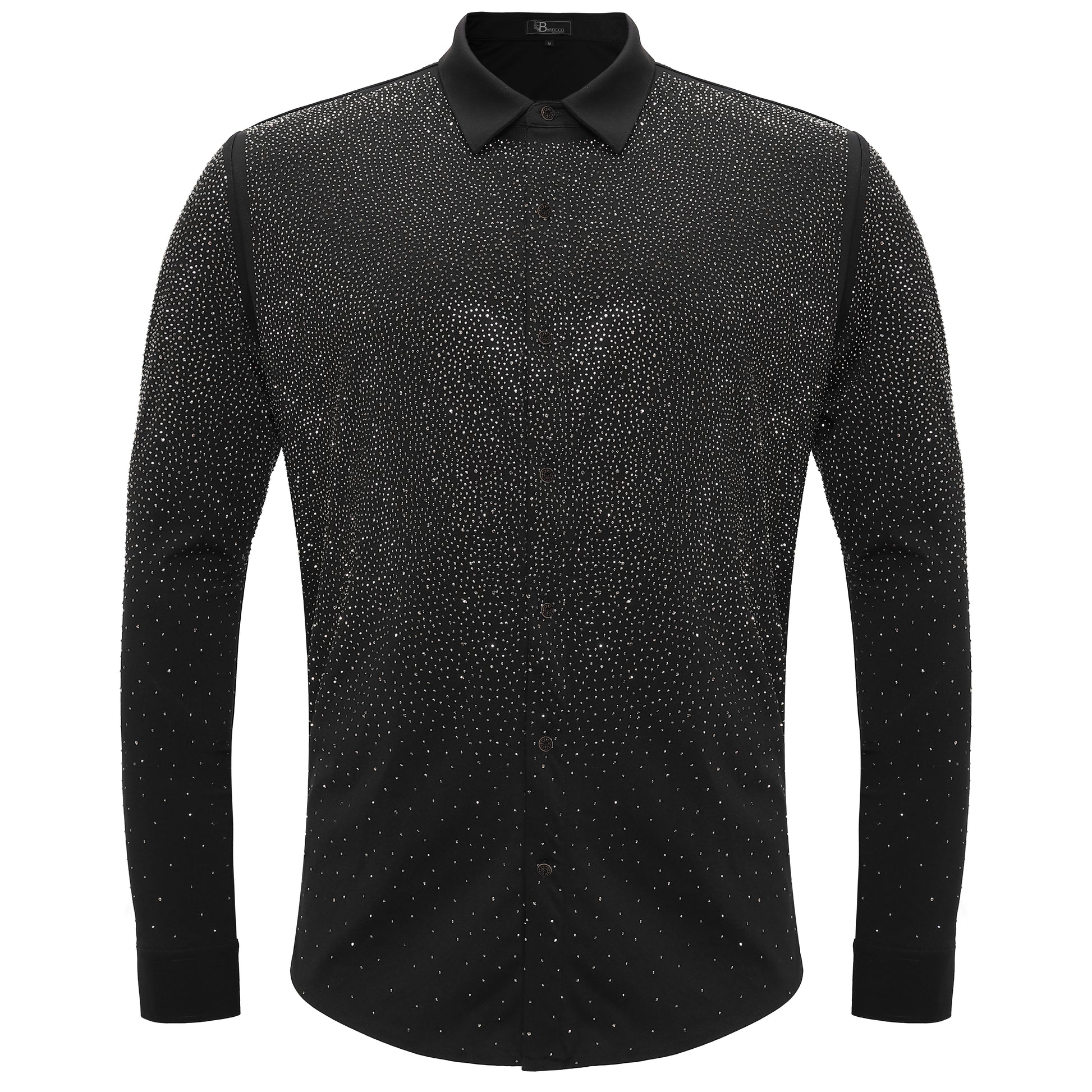 The Super Nova Button-Up Shirt embodies a perfect blend of sophistication and performance. Engineered with stitchless technology, this shirt provides a streamlined look that emphasizes masculine elegance. Enjoy the freedom of movement with the 4-way stretch fabric, designed to adapt to your every move while maintaining exceptional comfort. The breathable fabric ensures you stay cool and fresh, whether you're navigating a busy day or enjoying a night out. Eye-catching rhinestones elegantly adorn the full body, adding a striking touch of glamour that sets you apart in any crowd. For the modern man who values both style and functionality, the Super Nova is a standout choice that combines comfort and bold design effortlessly.