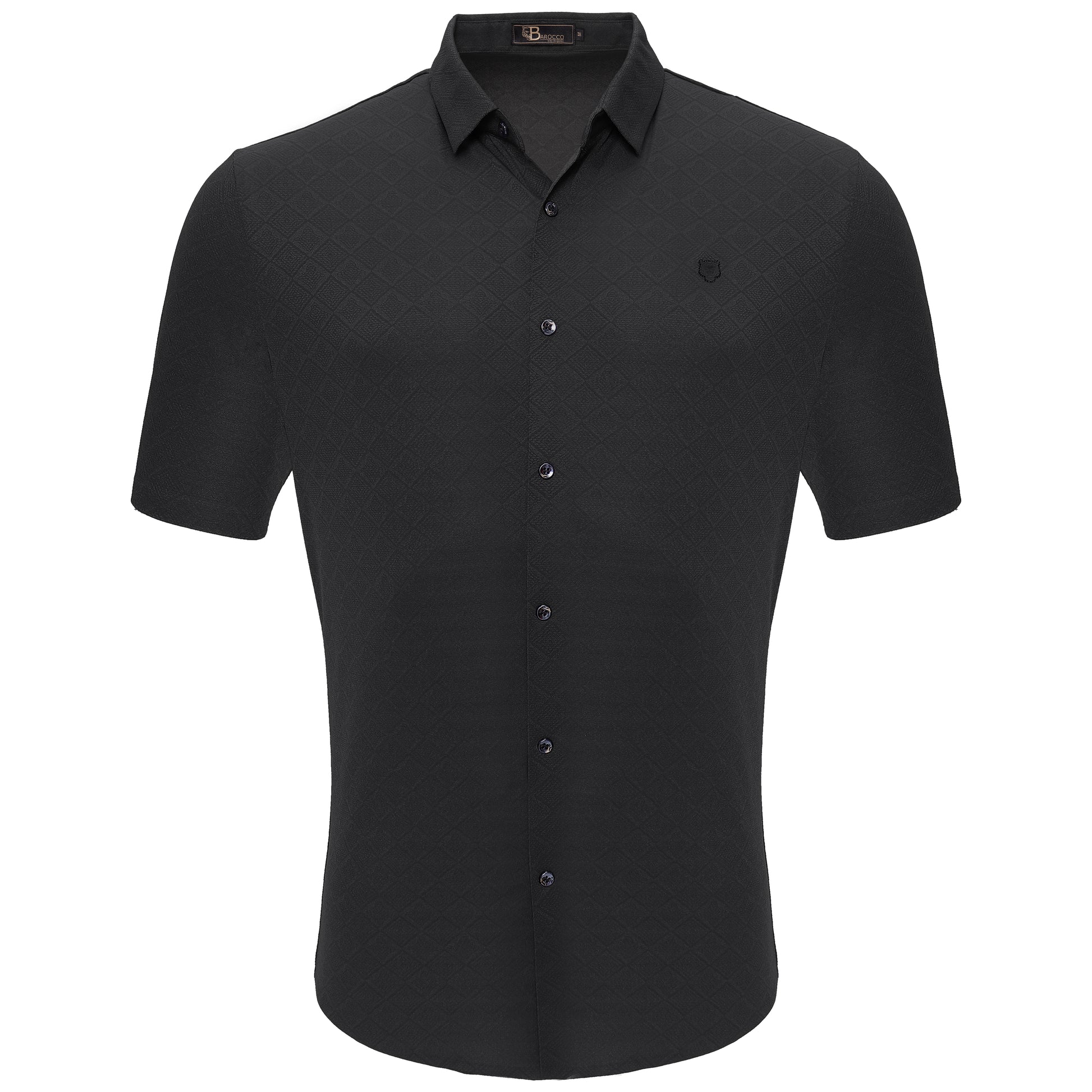 Redefine your casual elegance with the ELEVATE EDGE Short Sleeve Button Down Shirt. Designed for the modern man who values both style and comfort, this shirt features a unique textured pattern that adds depth to your look while exuding confidence. Crafted with advanced stitchless technology, this shirt ensures a seamless fit that enhances your silhouette without compromising on freedom of movement. The breathable fabric provides exceptional ventilation, keeping you cool and comfortable all day long. Experience the ultimate in flexibility with 4-way stretch, allowing you to navigate your day with ease and style. Emblazoned with the signature Barocco tiger motif on the chest, this shirt is a statement of sophistication and strength. Whether you're heading to the office or enjoying a night out, this is the perfect choice for commanding attention and showcasing your distinct style.