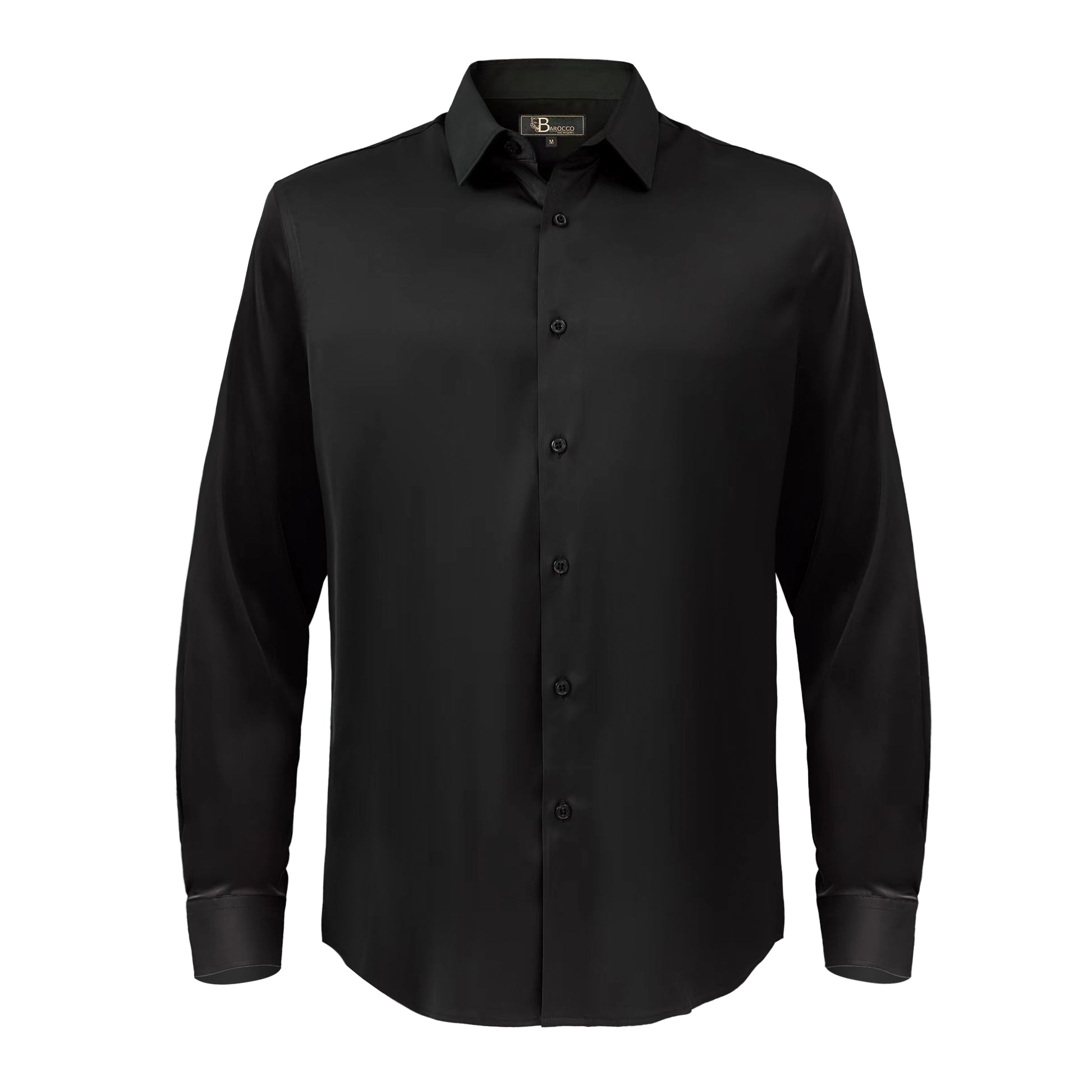 3. Barocco Luxe Satin Stretch Shirt BLACK
