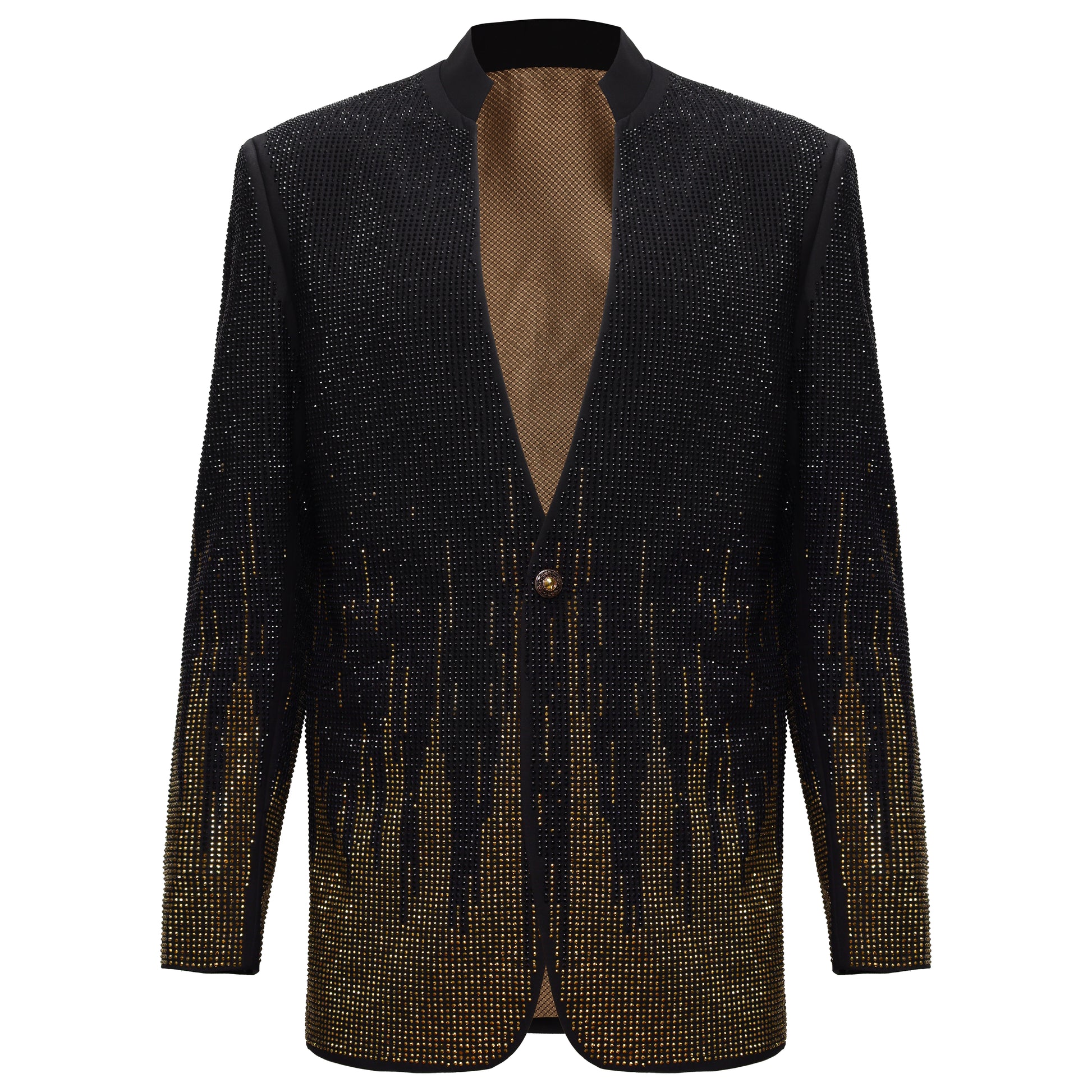 Make a bold statement with this lavish shiny Blazer, designed for those who dare to stand out. Crafted with intricate jacquard detailing, this blazer elegance and sophistication mignifies your desires. The single-breasted blazer features a slim fit, a deep shawl lapel, and a single-button closure, creating a sharp and modern silhouette. Perfect for weddings, galas, and upscale events, this blazer is your go-to for making an unforgettable impression.