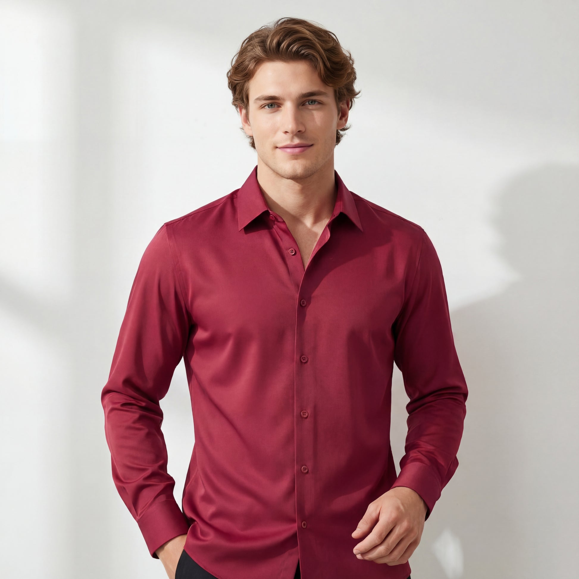 3. Camisa de manga larga sin costuras de satén SIGNITURE - Vino