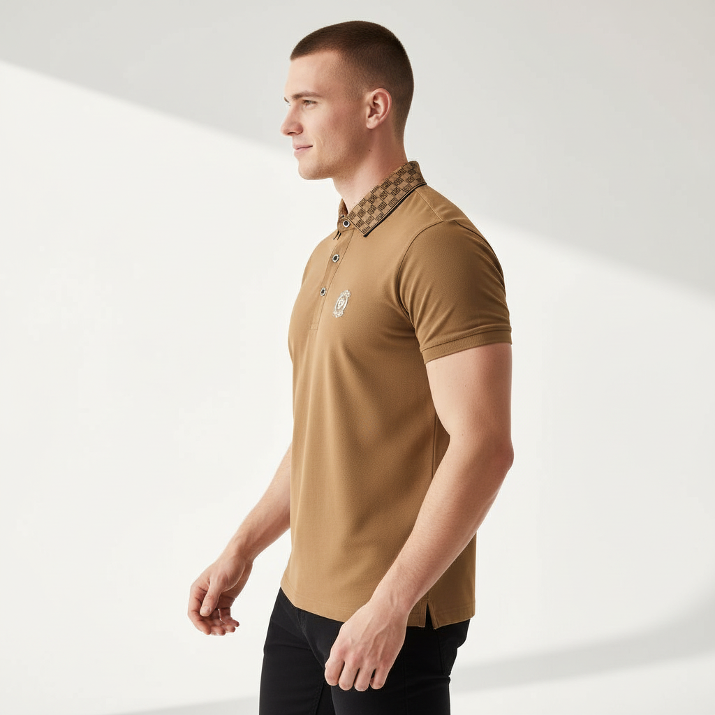 Monogram Trim Performance Polo - El baron-KHAKI